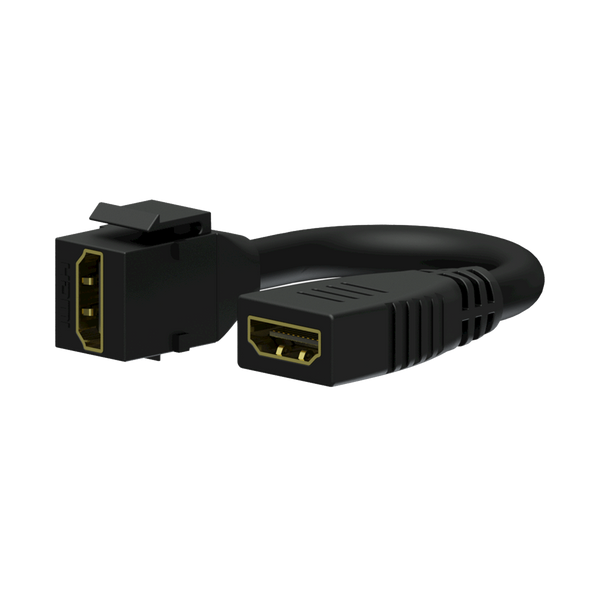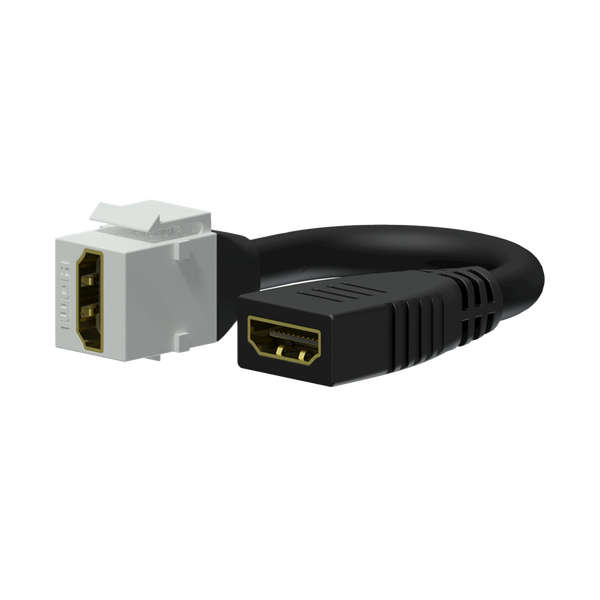 The VCK450 is a Keystone video adapter with a female HDMI connector on the front side and a pigtail female HDMI connector on the back of the module. This compact standardised snap-in module can easily be implemented into Keystone wallplates and adapters.